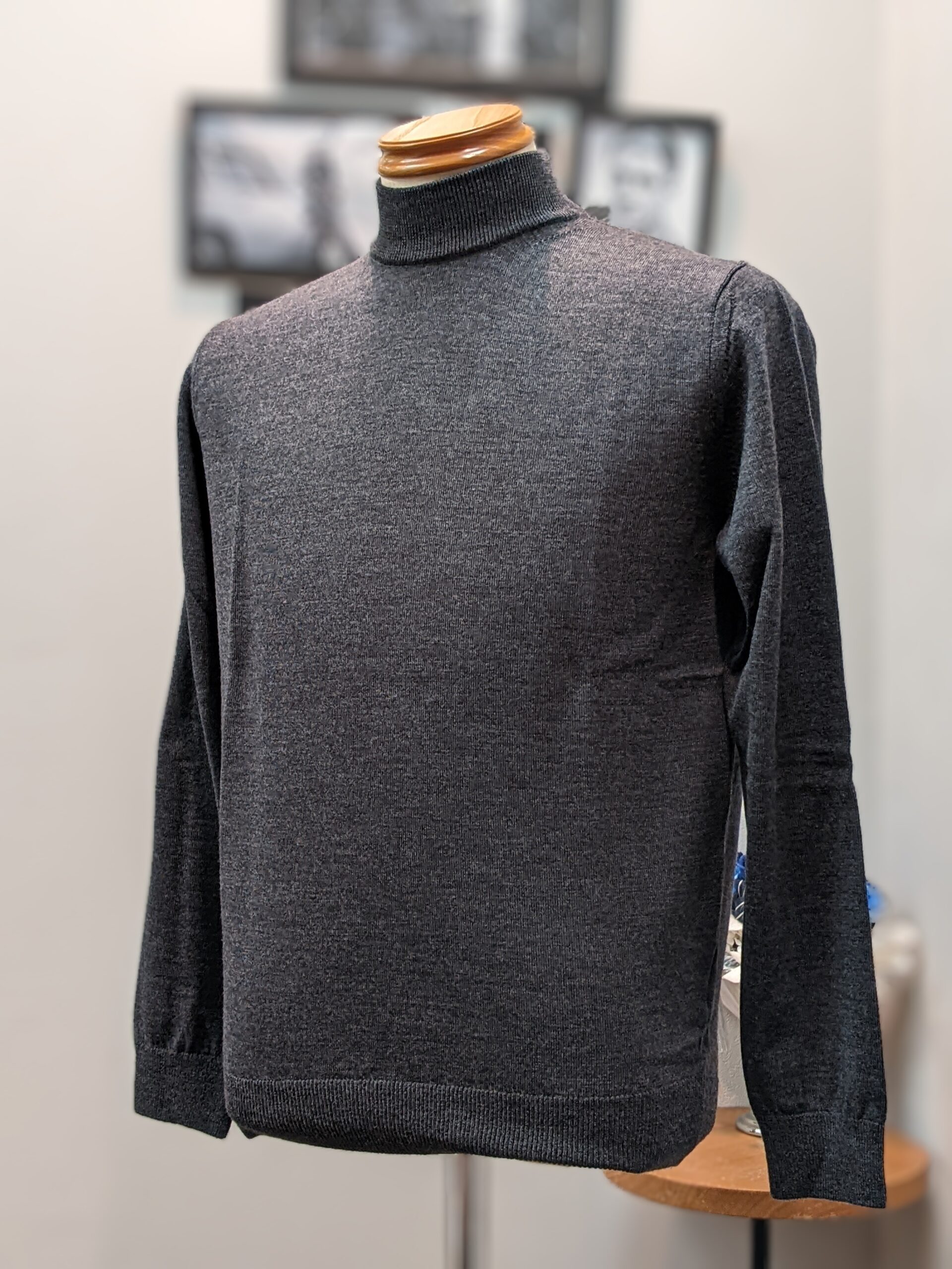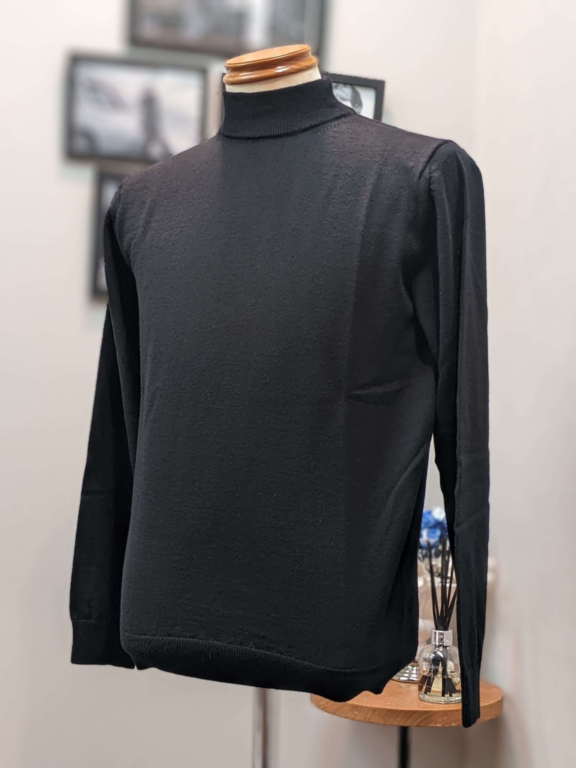 オーストラリア産メリノウールを使用し、滑らかな肌触りと光沢感が特徴です。12G天竺編みで、保温性と耐久性に優れ、チクチク感も少ない着心地。モックネックが洗練された印象を与え、ジャケットやカーディガンとの相性も抜群です。袖や裾のリブは程よいフィット感を実現し、美しく設計されたシルエットが快適な着心地を生み出します。ウール100%ながらご家庭で選択可能という実用性も見逃せないポイントですね!