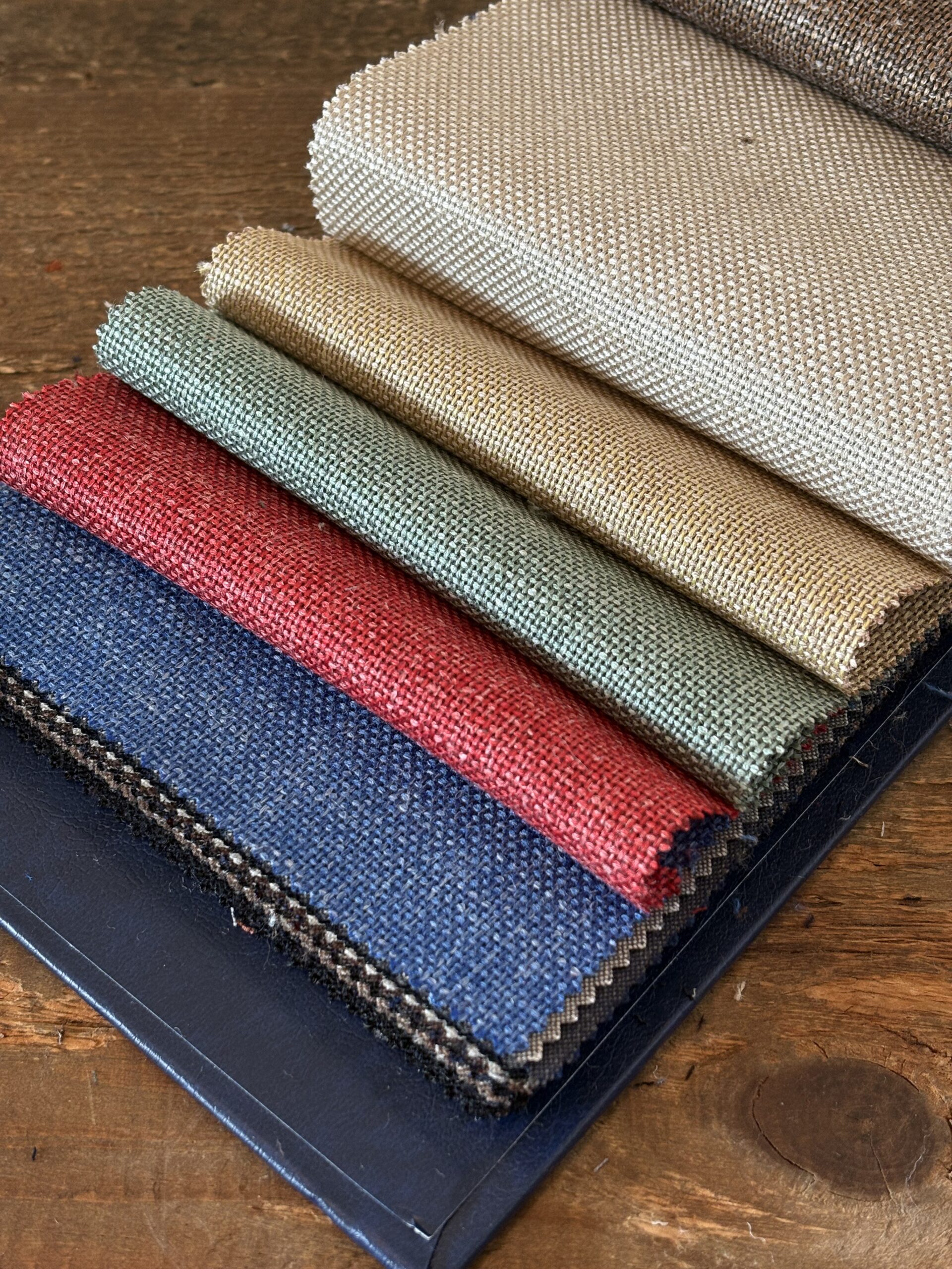 春夏向けスーツの定番薄手で通気性の高いトロピカル地です。熱帯”Tropical”地方でも快適に過ごせるよう開発され、軽量、清涼感、高い通気性、吸湿性、シワになりにくさ等が特徴。網戸のような織りになっており、ハリ・コシがしっかりしたマットな生地感を見せるトロピカルですが、さすが名だたる老舗テーラーが長年愛用しているスコフィールド&スミスですね。トロピカル特有の生地感は残しながら、その奥に滑らかな手触りがあるんです。この滑らかさは、スーツに仕立てあがった際に、より実感できるのではないでしょうか。また、色出しも秀逸です。何色もの色糸を使用し、生地を織りあげているからこその深み。個人的に、フォックスブラザーズ不朽の名作『クラシックフランネル』の色出しに通じるものを感じました。めちゃくちゃ良いです。下記、カラー展開の写真ですが、一度実物で見ていただくことを、強くお勧めします!グリーンがかったネイビーとホワイト、ピンクブラウンは是非見てほしいカラーです。