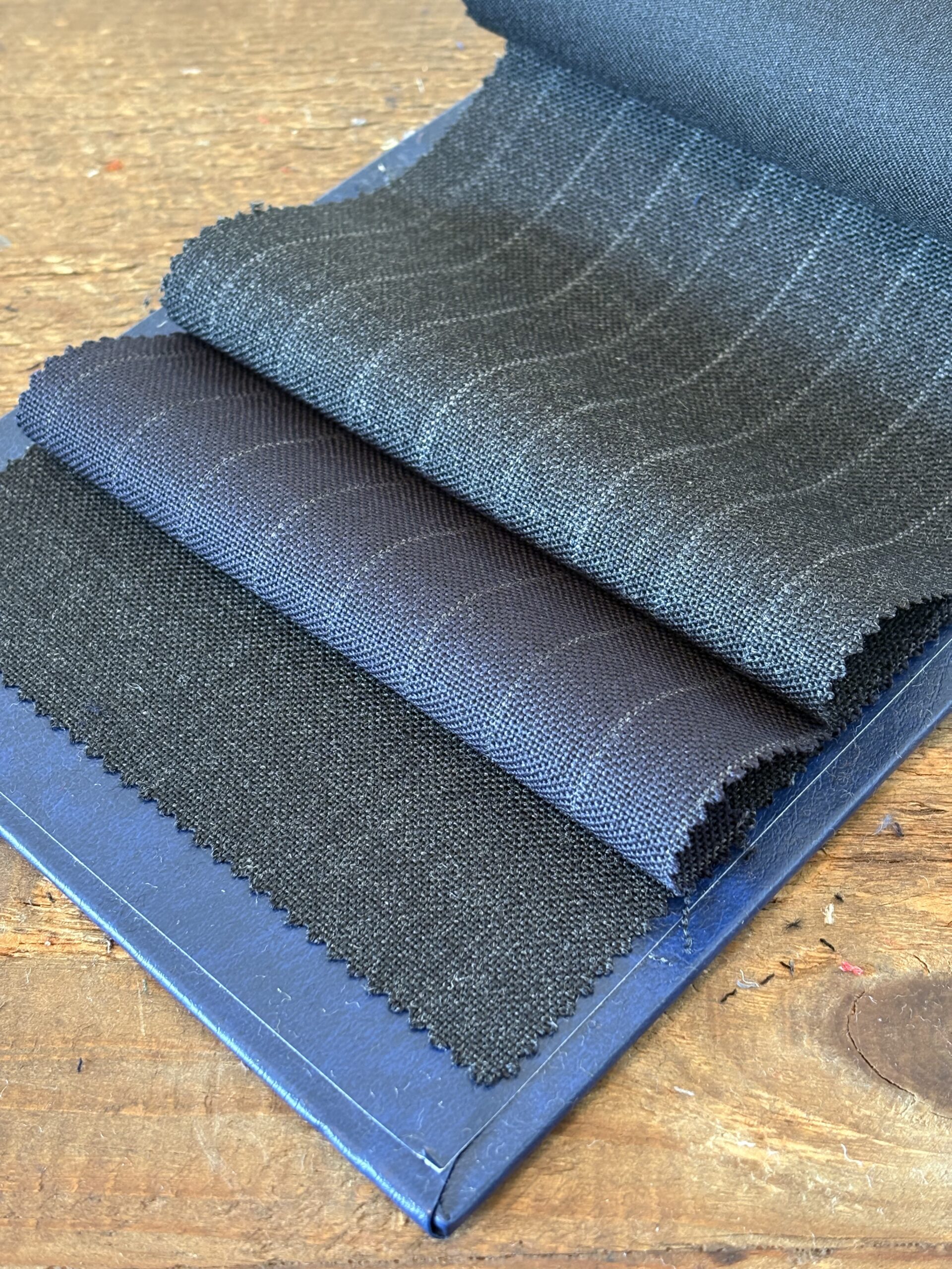 もう一つ、クラシック好きにはたまらない”4PLY”(資料がなかったので、おそらくですが・・・)も編集されています。この生地もまためちゃくちゃ良いです!トロピカルと同じ平織ですが、こちらは強撚糸を4本使用して織っていますので、織りの組織が目視出来て、それがこの生地の特異性を強調するんです。このストライプの4PLYでダブルスーツなどはいかがでしょう?往年のムービースターになりきれると思いますよ!