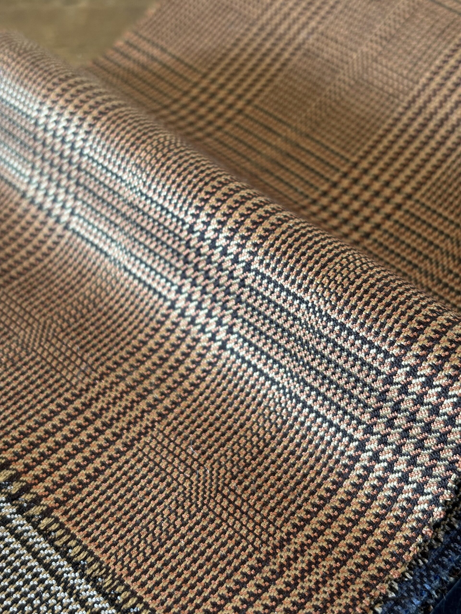 カラーバリエーションは全7種。威厳を備えたクラシックなグレンプレイドはライトブラウン、カーキ、ブルーネイビーの3色。シルクの光沢感と滑らかな生地感は、上品で落ち着いた雰囲気を与えます。ネイビー×ゴールドというユニークな組み合わせの千鳥格子柄はこれ以上ない非日常を演出し、ネイビーの濃淡2色を使用したブロックチェック柄は大人の色気を漂わせる。紺・黒2色のジャケット地定番のホップサックも、アイコニックな生地感に落とし込むことで、他とは一味違うブレザーを味わえるでしょう。